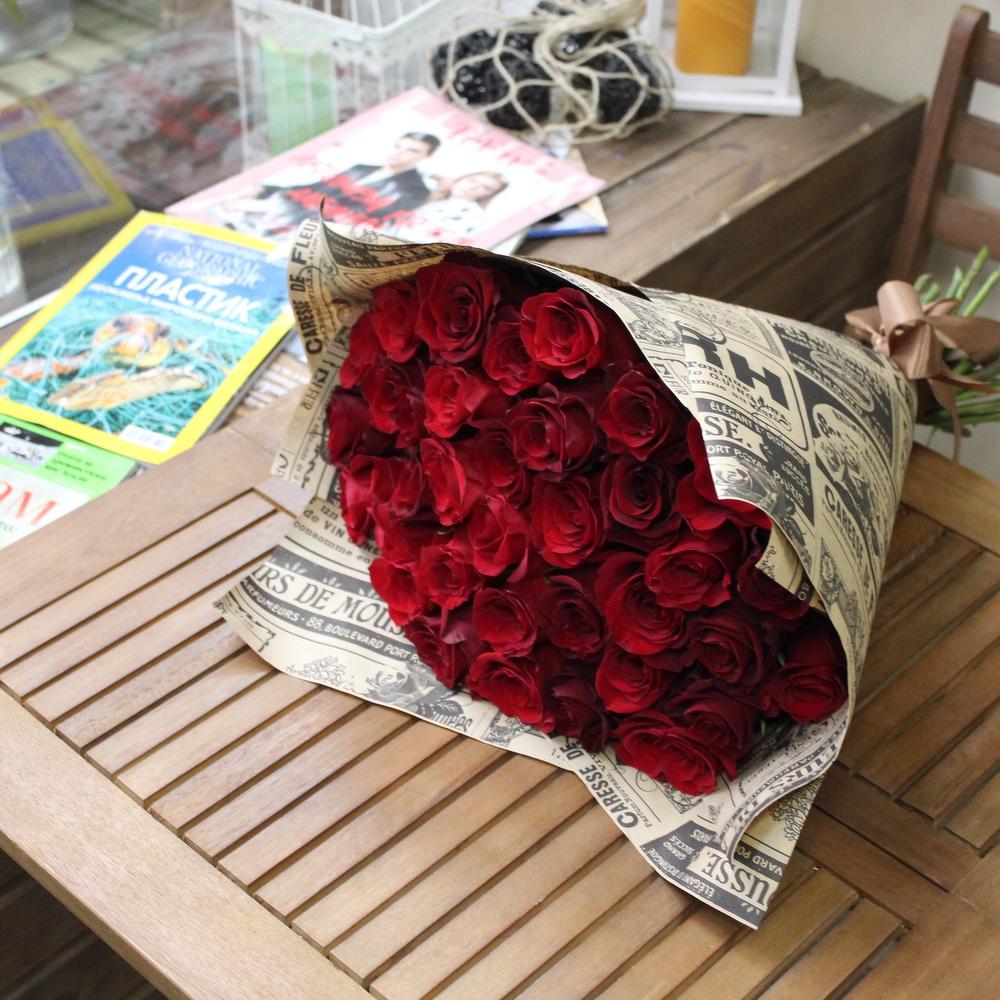 Роза Эквадор Премиум – 35 шт.Крафт упаковка – 2 шт.Сердце – 1 шт.