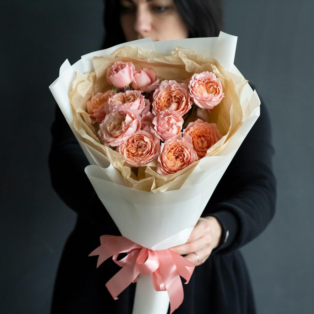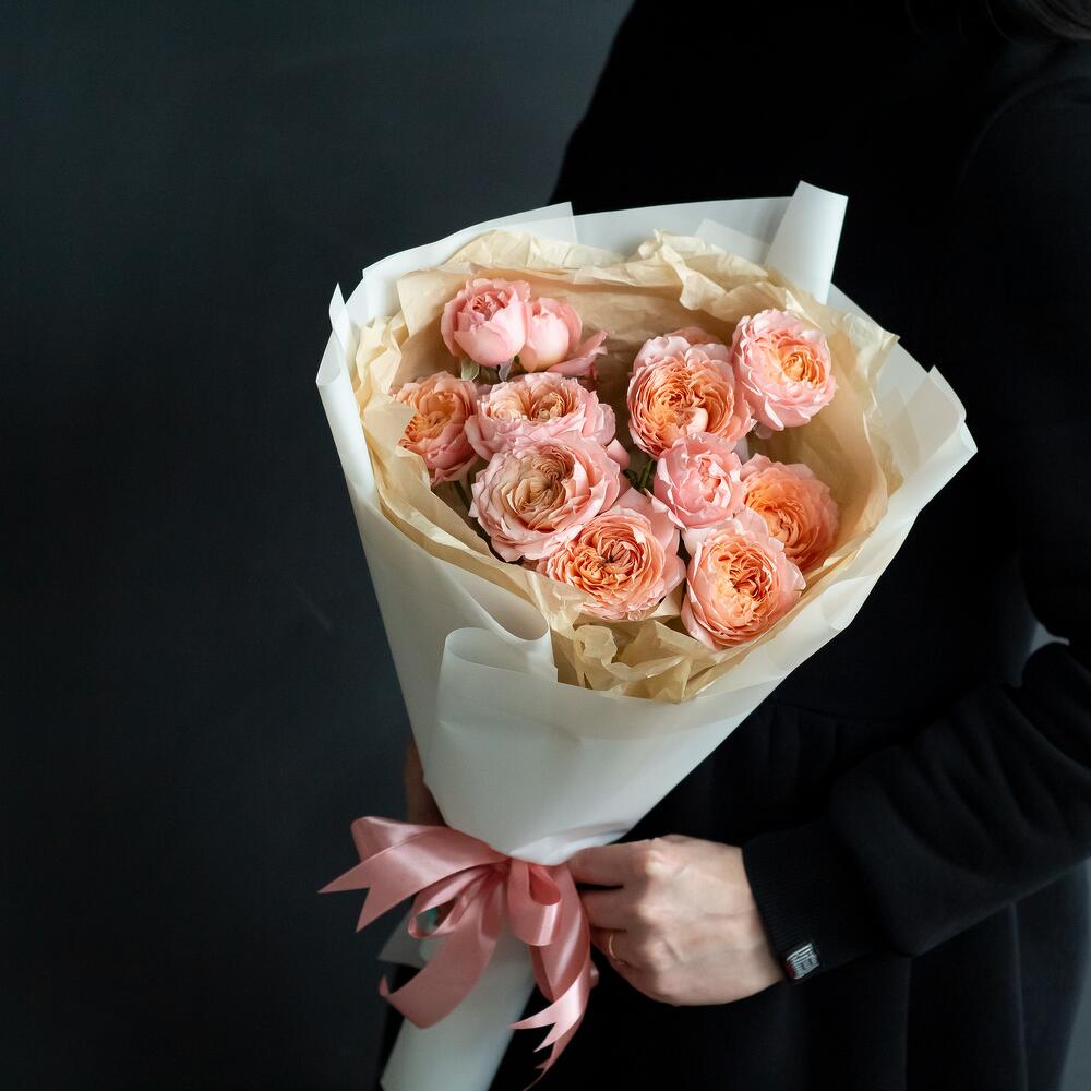 Небольшой монобукет пионовидных кустовых роз сорта Джульетта