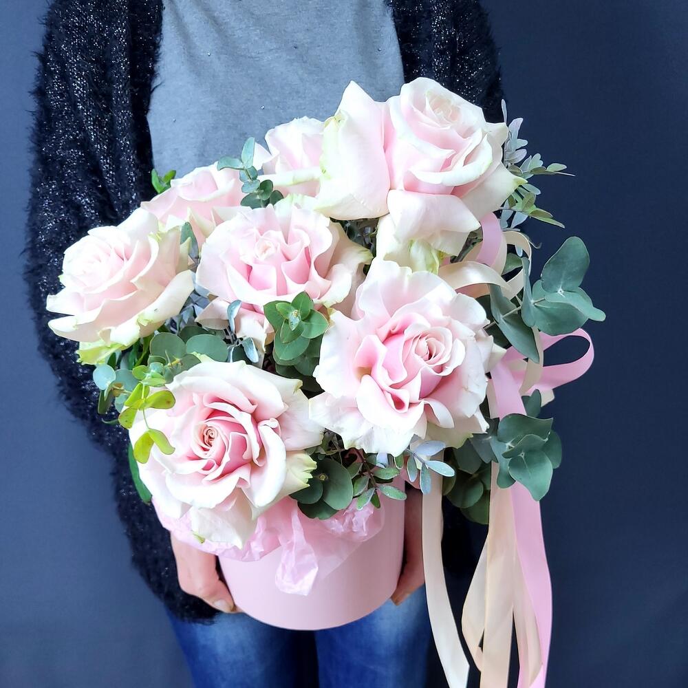 Нежные розы в шляпной коробке