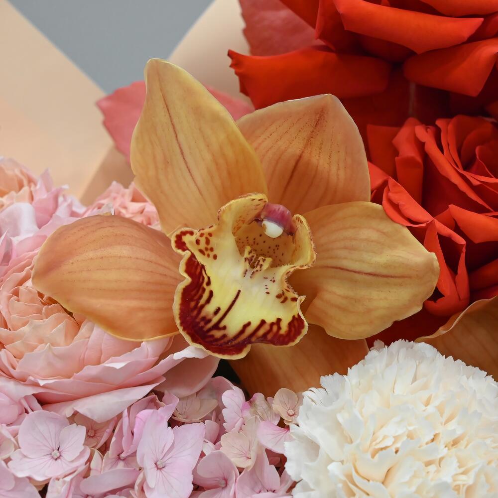 Огромный букет с французской розой, пион кустовой розой и орхидеей