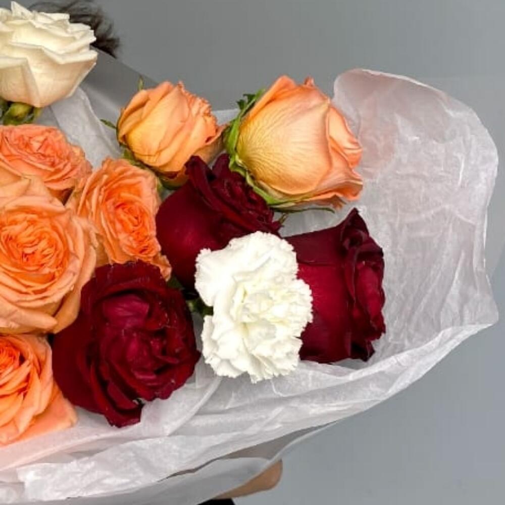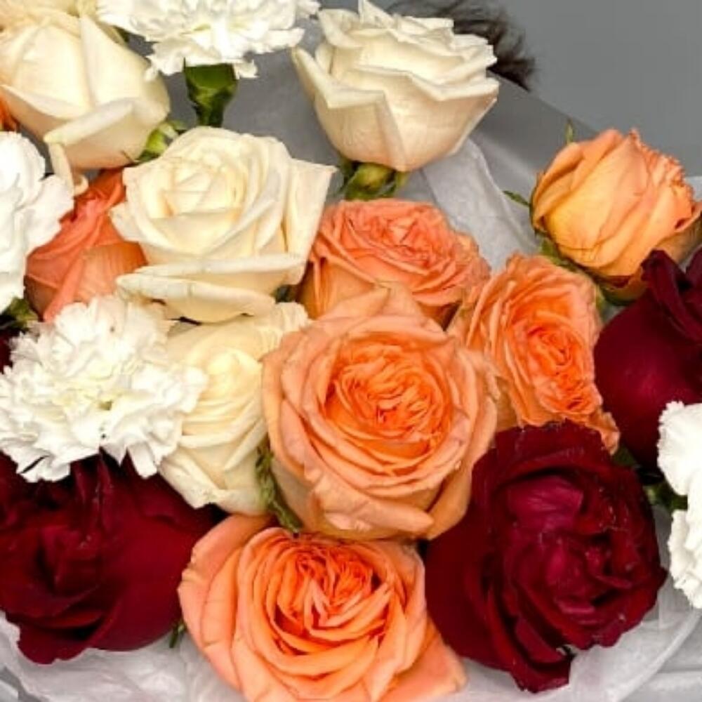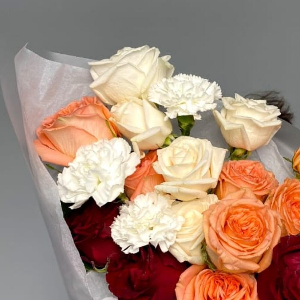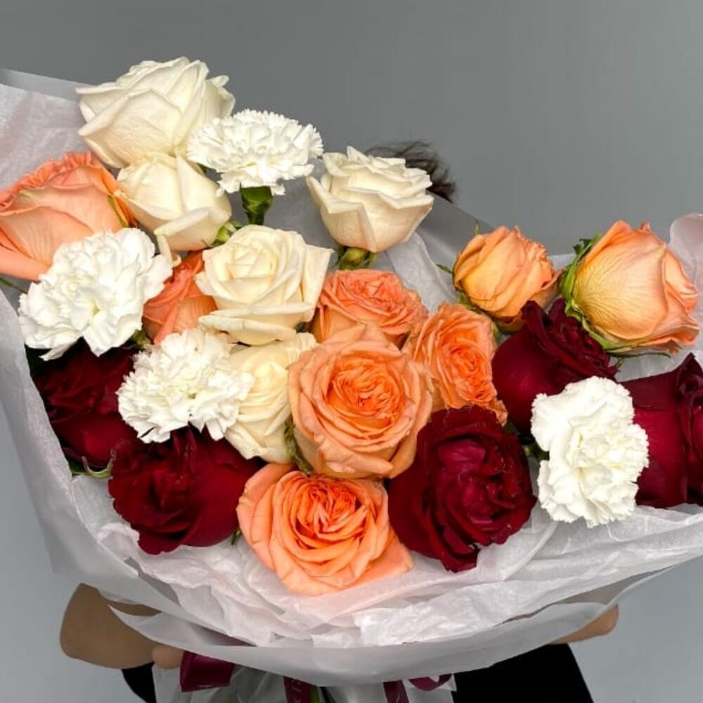 Гвоздики, Кустовые розы, Лизиантусы, Пионовидные розы, Розы