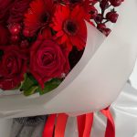 Розы и Гербера в дизайнерском оформлении