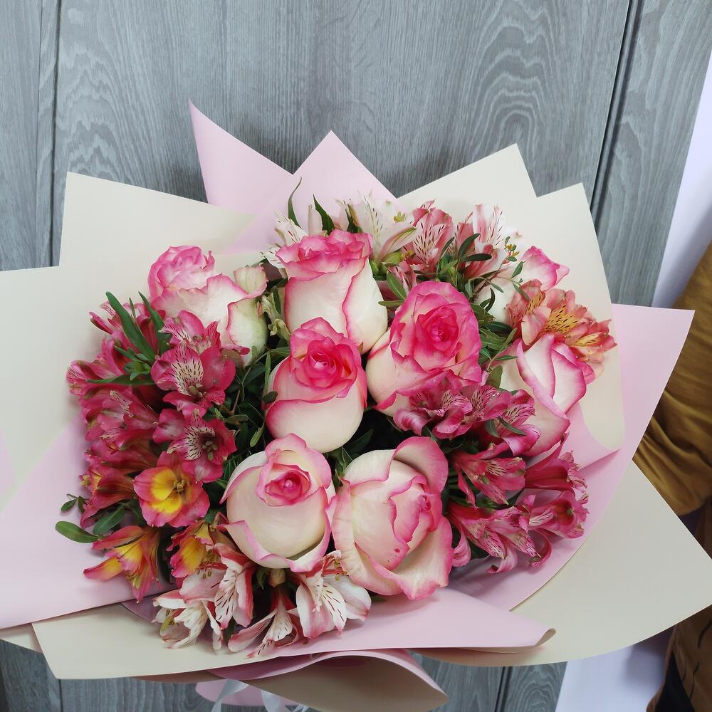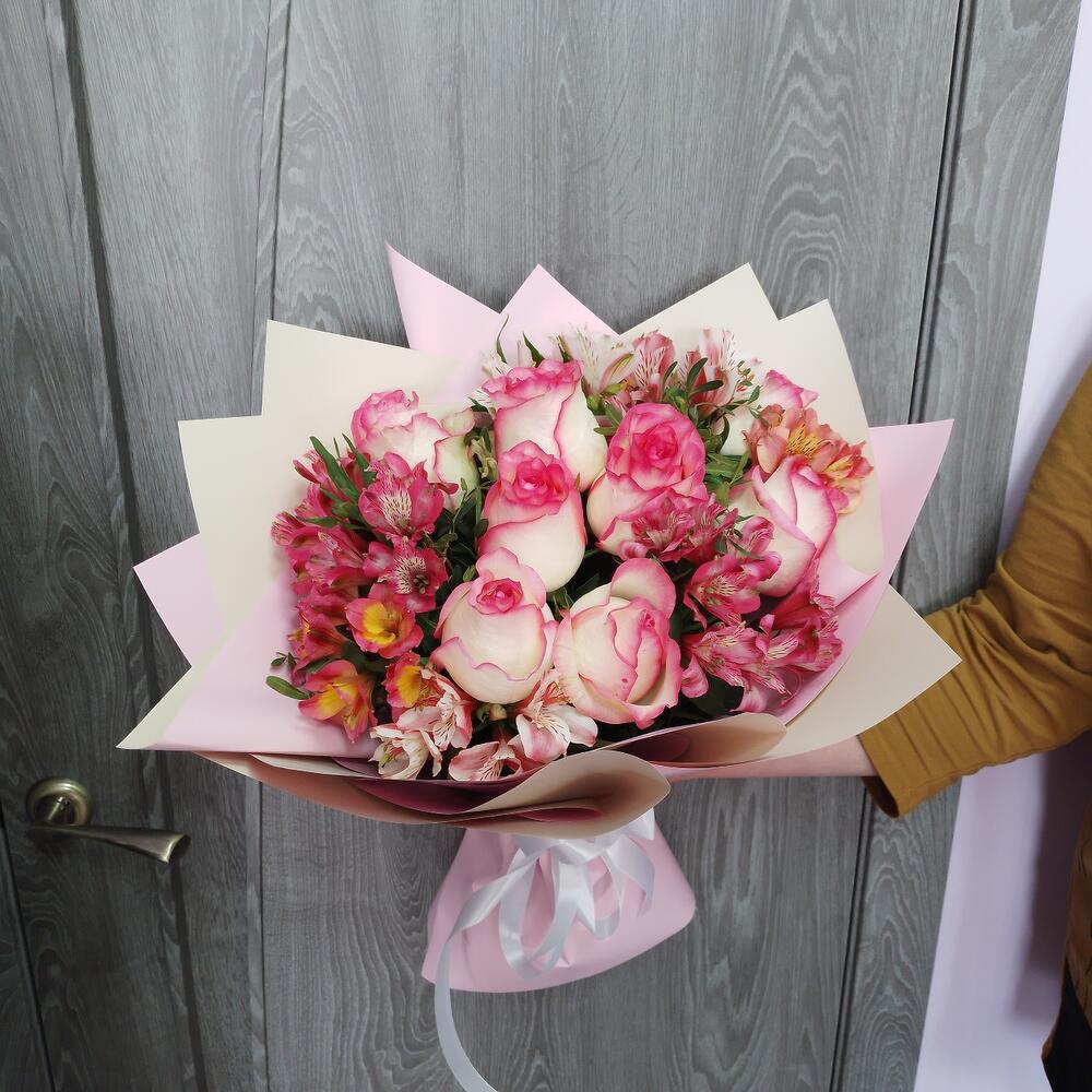 Сборный с розами и альстромерияей