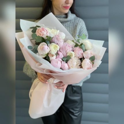 “Эвкалиптическая роскошь” гортензия и пионовидная кустовая роза