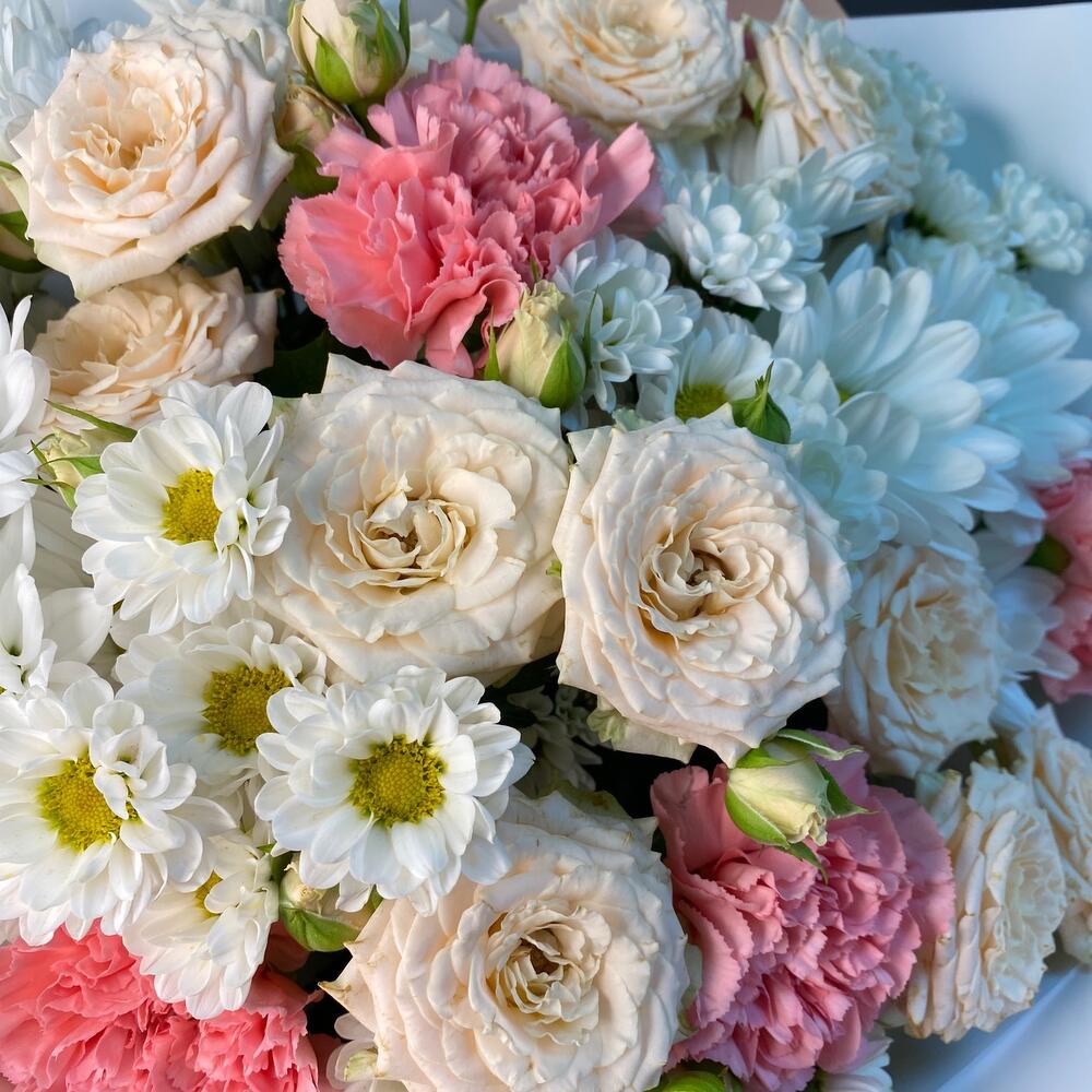 Категории: Гвоздики, Кустовые розы, Розы, Хризантемы