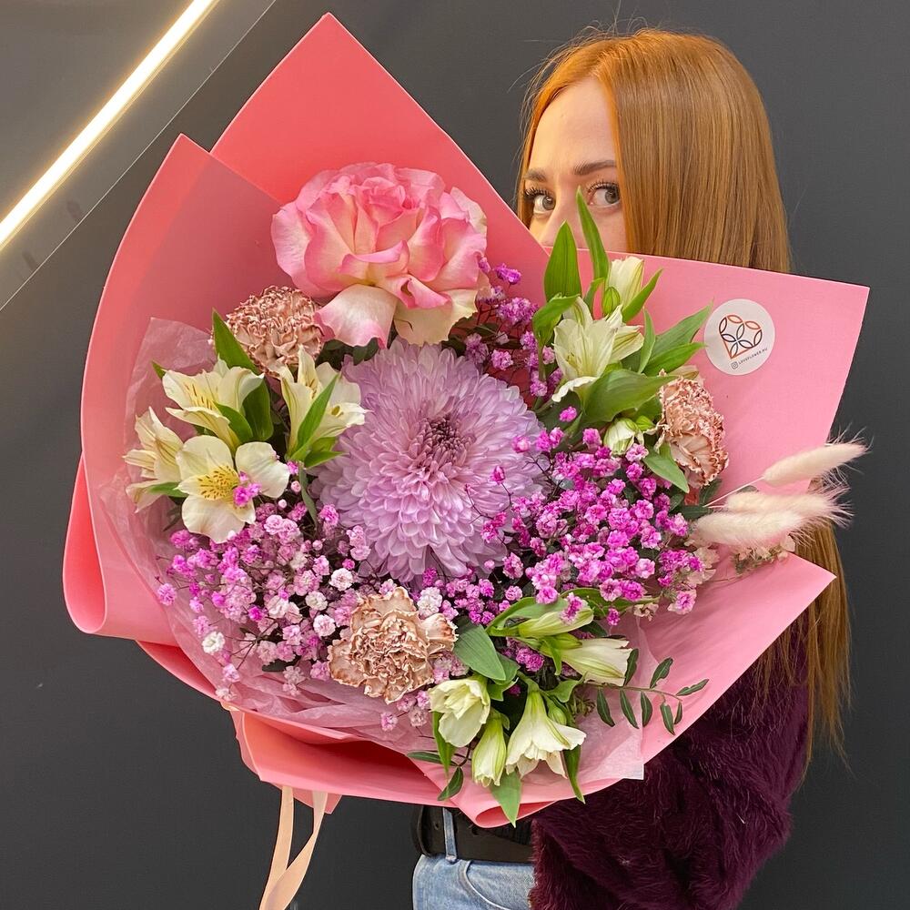 Категорий: Альстромерии, Гвоздики, Гипсофила, Розы, Хризантемы