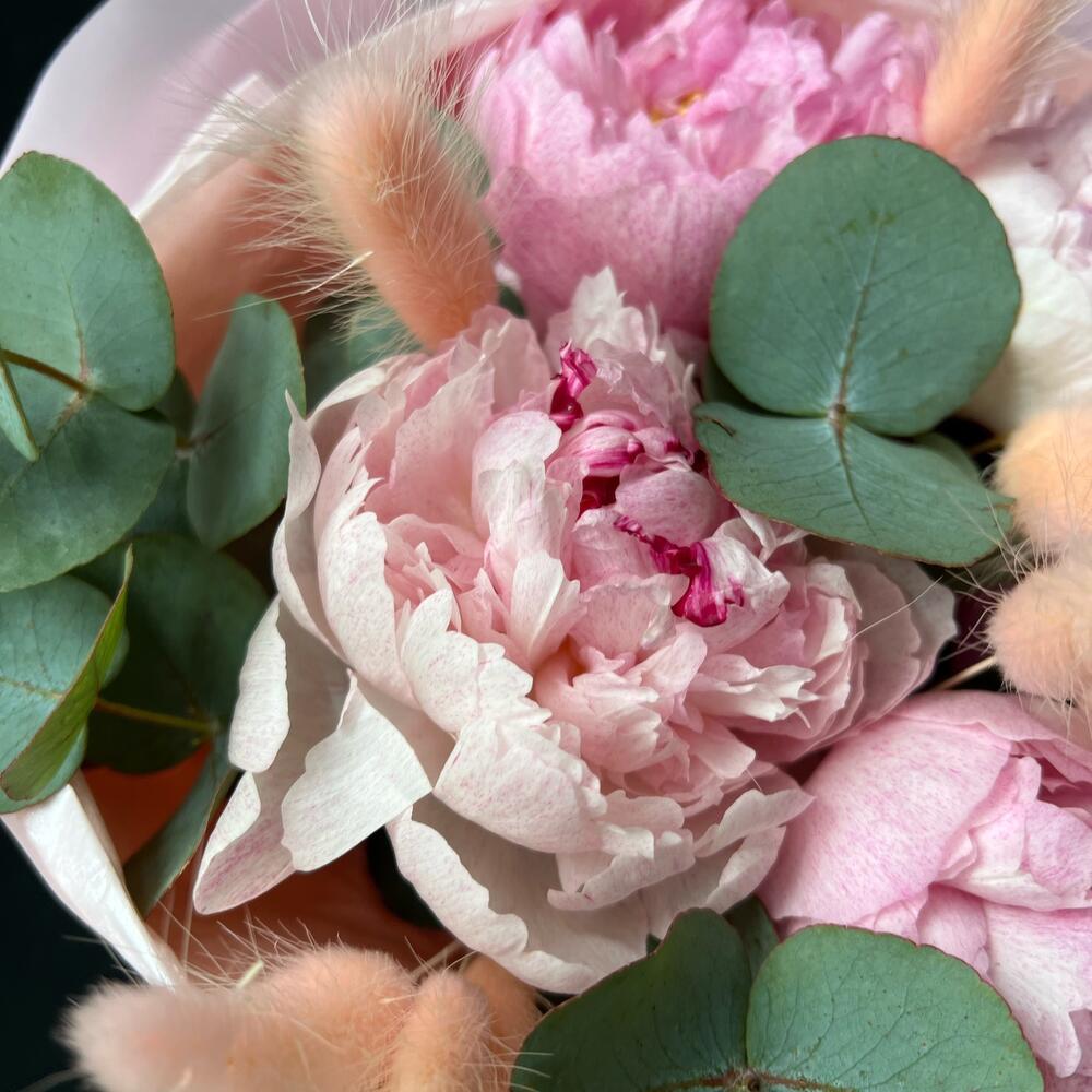 Букет пионов эвкалипта и сухоцветов «Пиономания»
