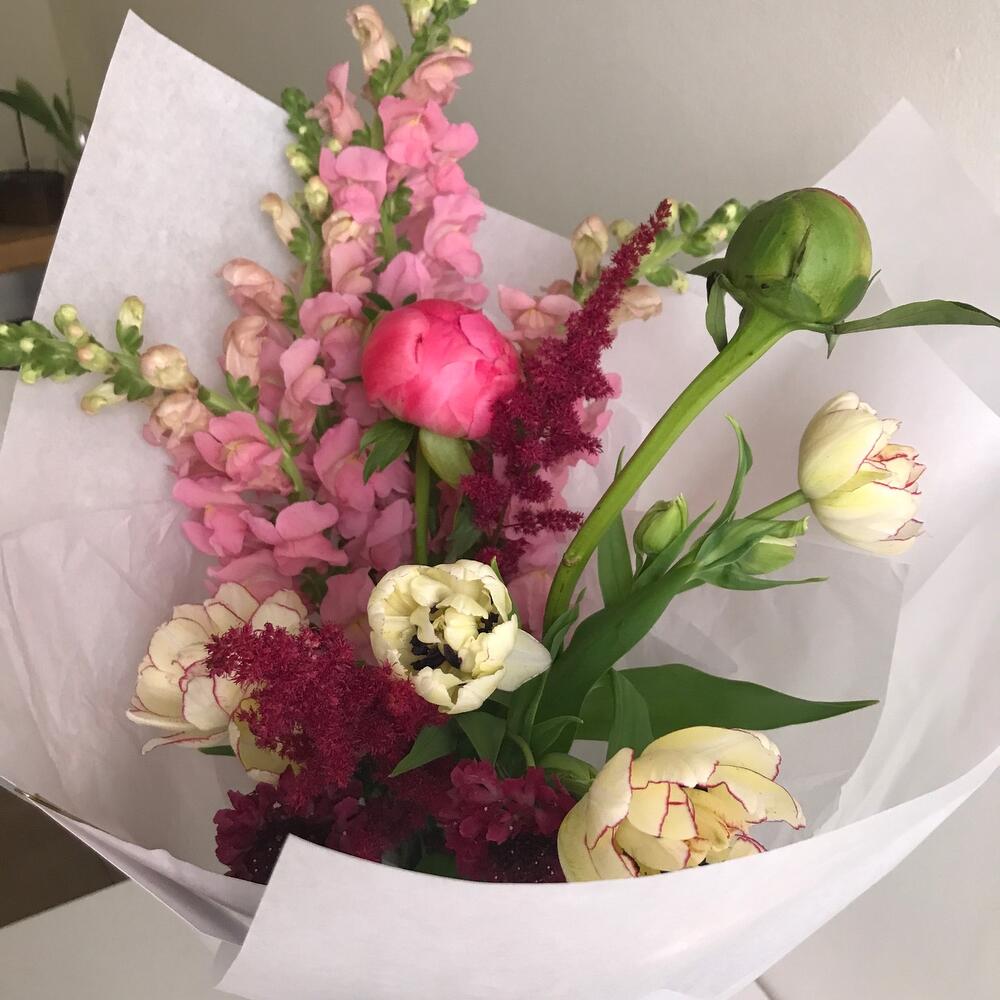 Пион – 2 шт.тюльпан кустовой фермерский – 4 шт.антиринум – 4 шт.Астильба – 3 шт.Скабиоза – 2 шт.