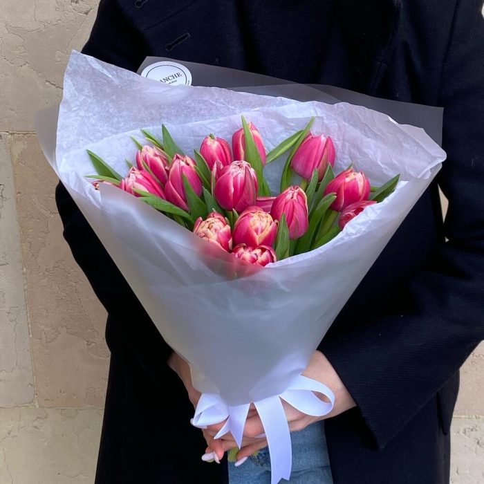 Пионовидные бело-малиновые тюльпаны colombus одни из самых чарующих тюльпанов в нашей фирменной белой упаковке Будут долго радовать получательницу и постепенно раскрывать лепестки ✨