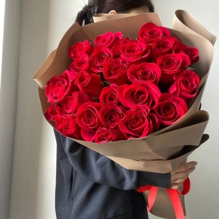 mono bouquet 88 из 25 кустовых пионовидных роз сорта madam bombastic и эвкалипта
