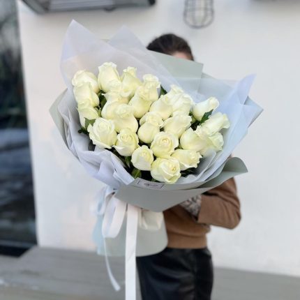 mono bouquet 89 из 25 кустовых пионовидных роз сорта classic sensation и эвкалипта